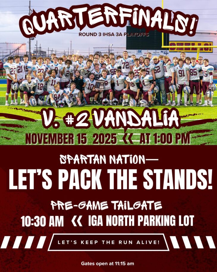After Wednesday night’s home match against Bloomington Central Catholic, the Spartans are off until a 7 p.m. nonconference match at Tri-Valley next Monday. The Spartans then have three other matches scheduled for next week: 7 p.m. on Oct. 8 at rival Unity, 7 p.m. on Oct. 10 at home against Pontiac and at noon on Oct. 12 at home against Chillicothe Illinois Valley Central.